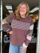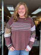The No Complaints Top combines comfy washed fabric with playful pattern mixing for a fun, easygoing look you'll want to wear every day.