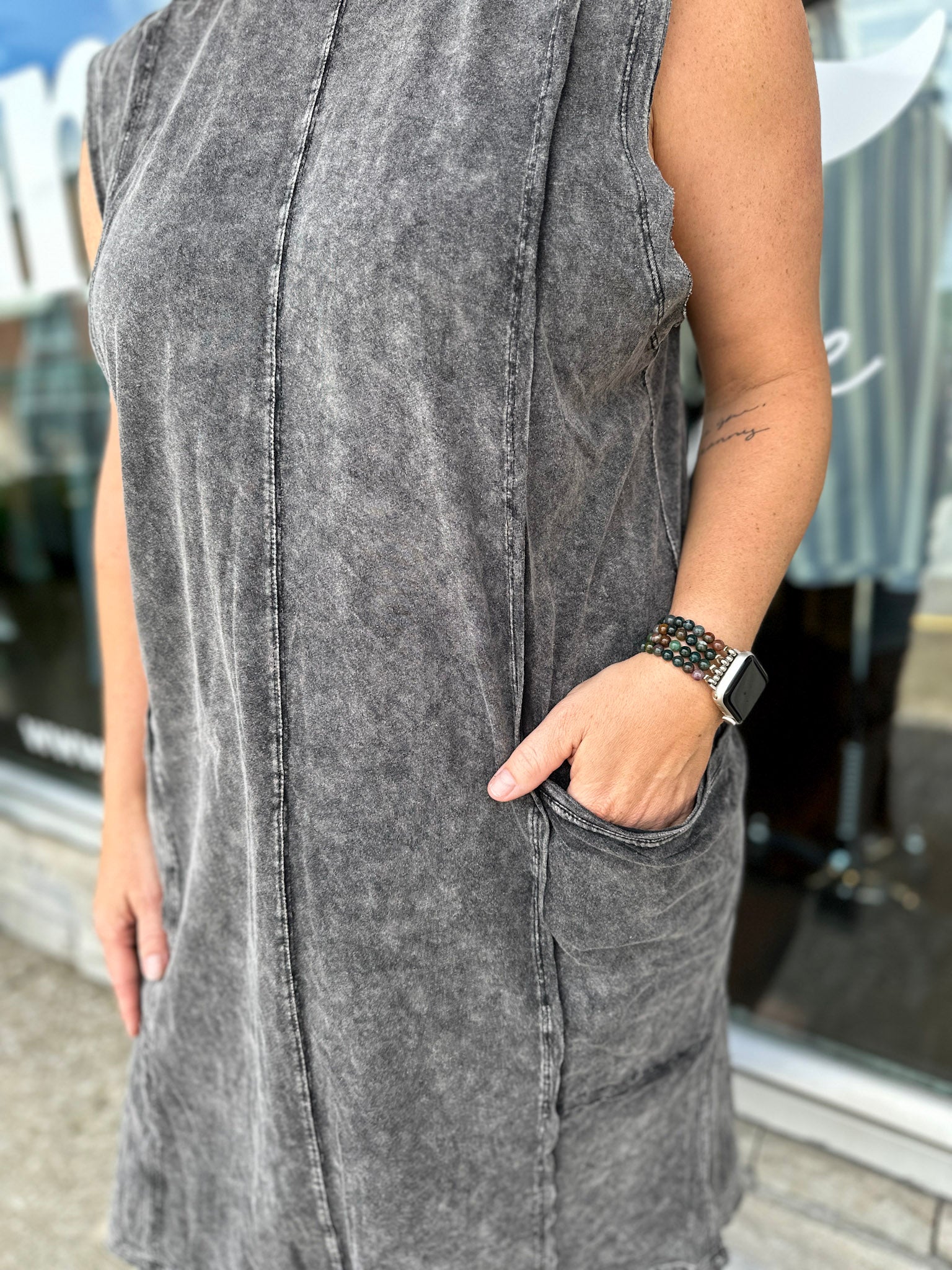 The perfect little dress to throw over your bathing suit! Relaxed fit with side pickets and large arm holes. So cute and comfy to keep you cool on the hottest summer days!