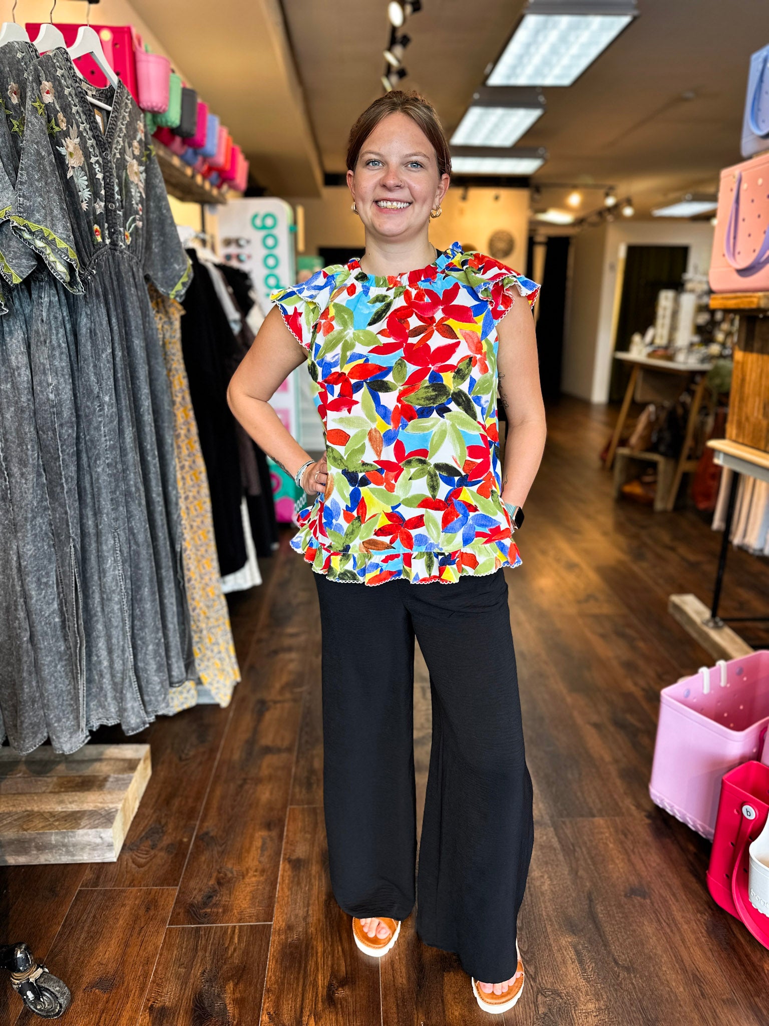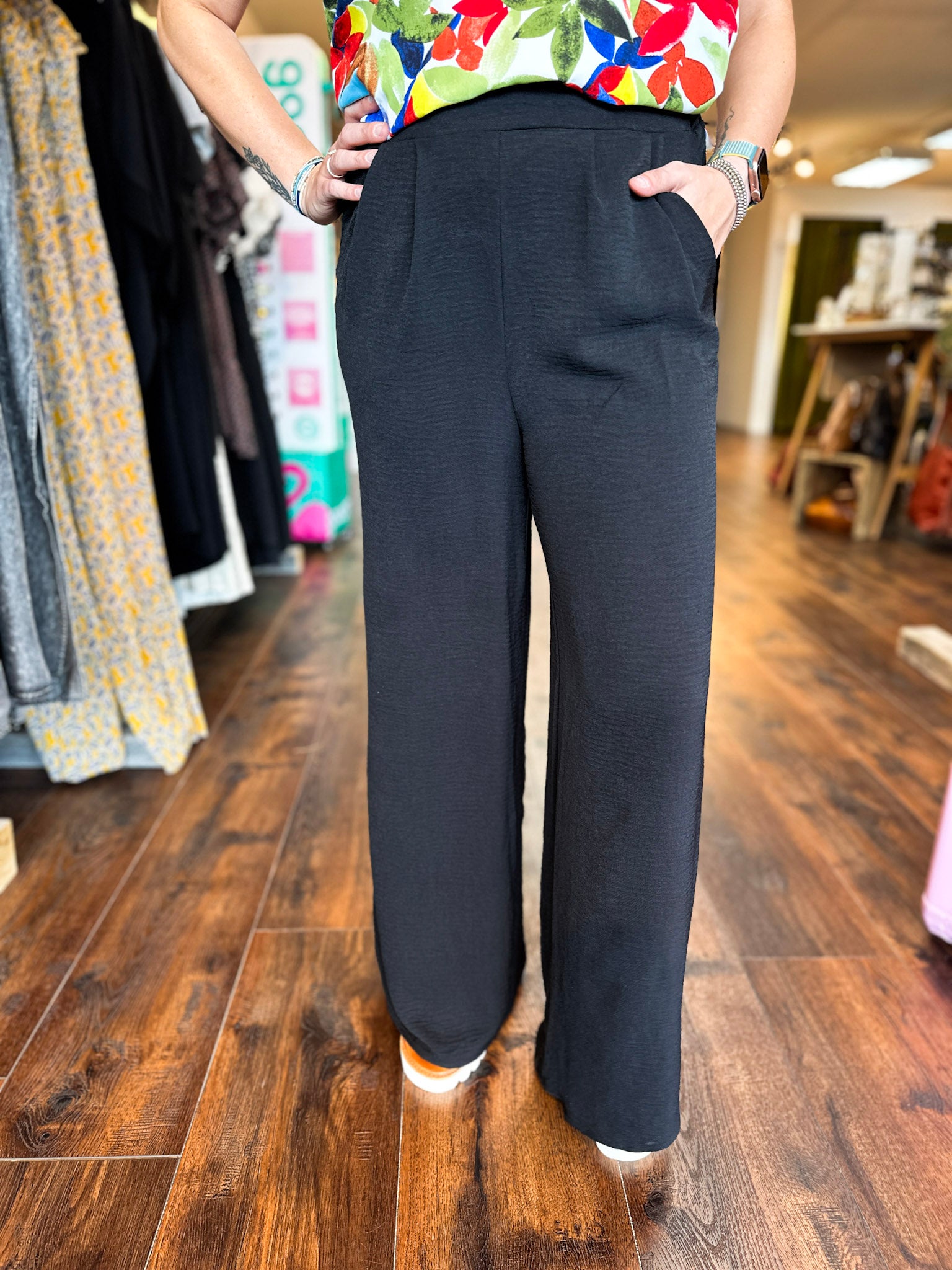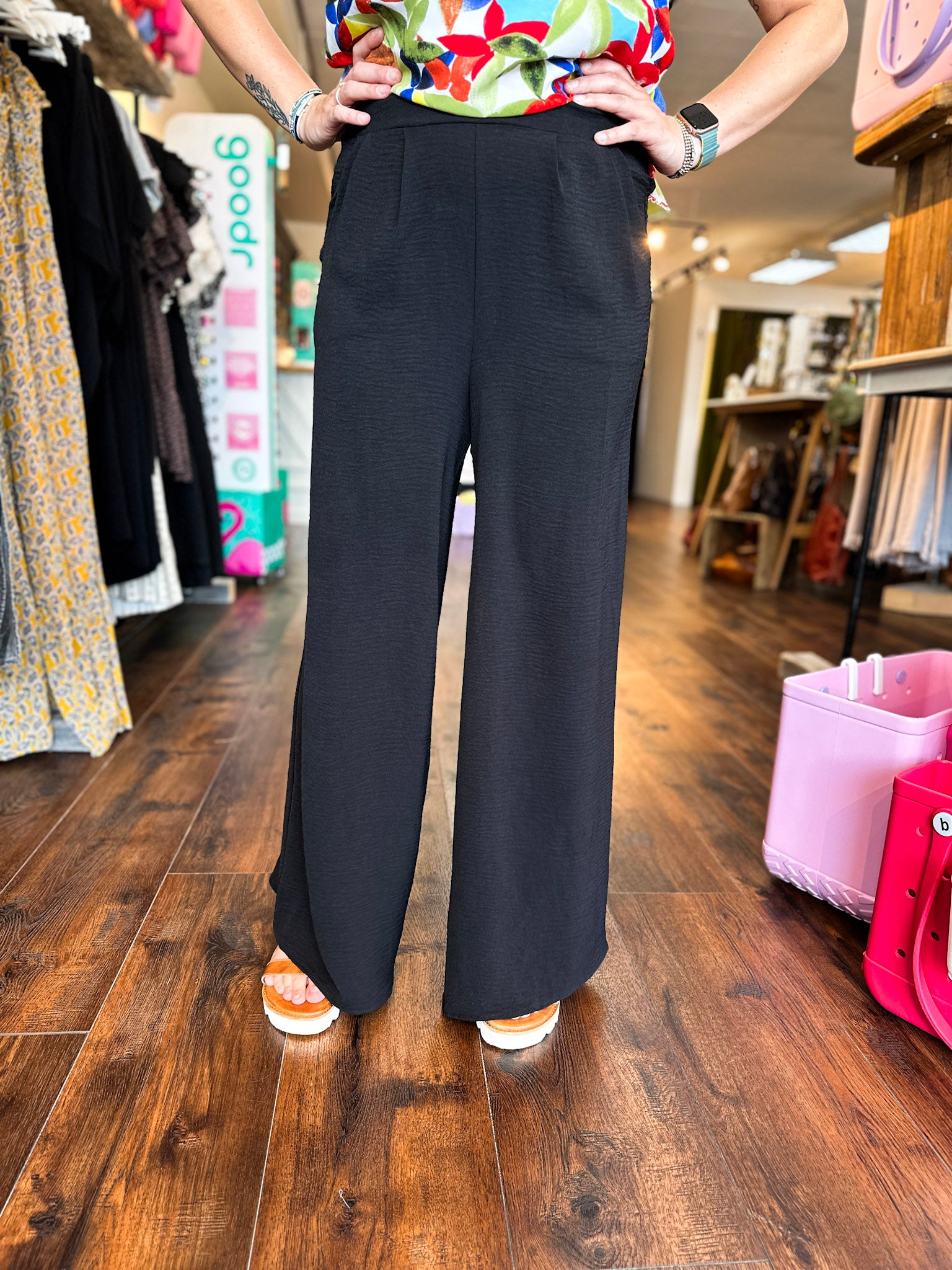 Breezy, comfy, and classroom-approved đ These wide leg pants feature a back elastic waistband for an easy, flattering fit and side pockets for all the essentials. Made from our beloved air flow fabric that everyone raves aboutâespecially teachers who need to stay cool and comfortable all day long. Whether youâre headed to work or just want to look put-together without sacrificing comfort, these pants are a total win!Â