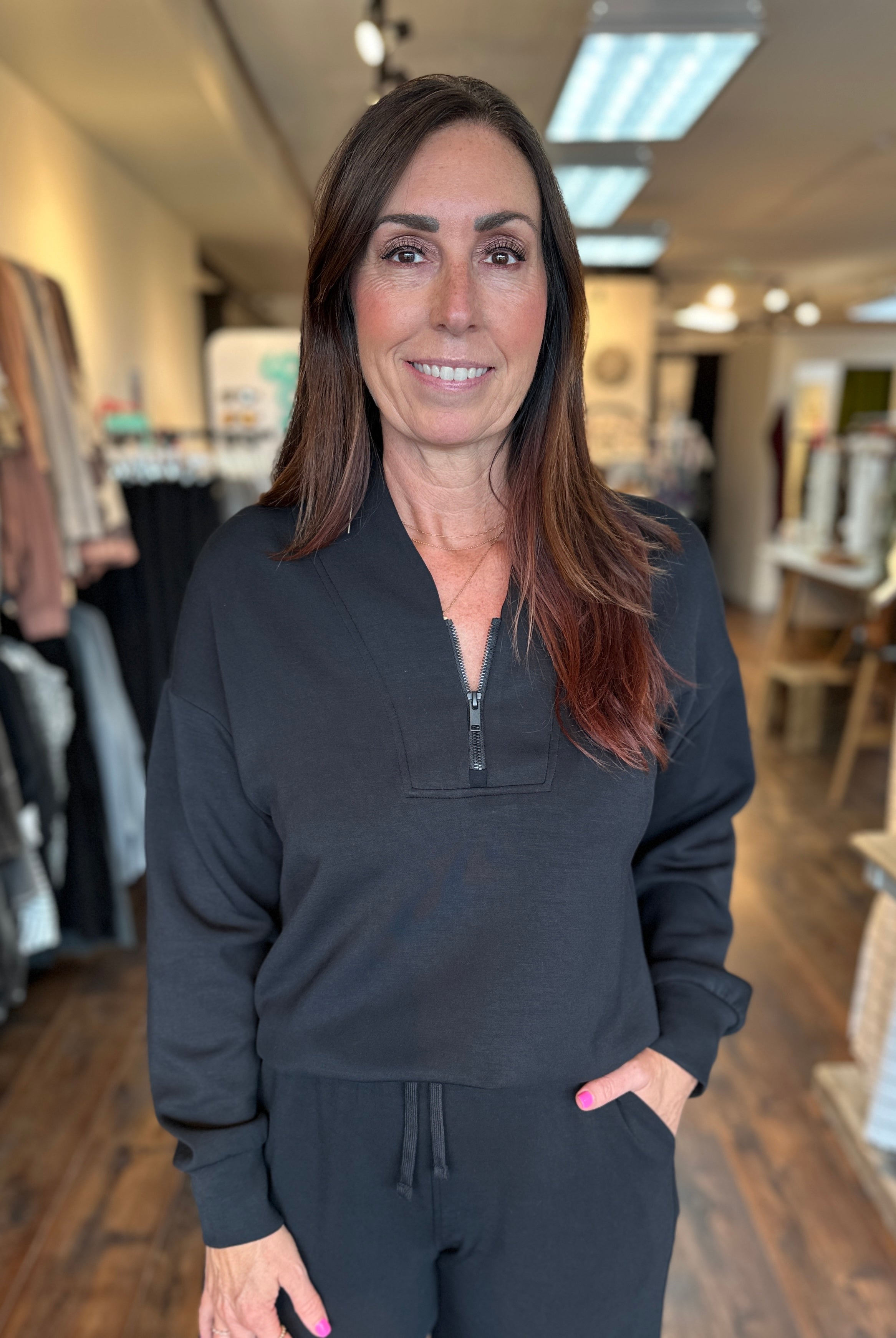 Rambler Quarter Zip Top - Black