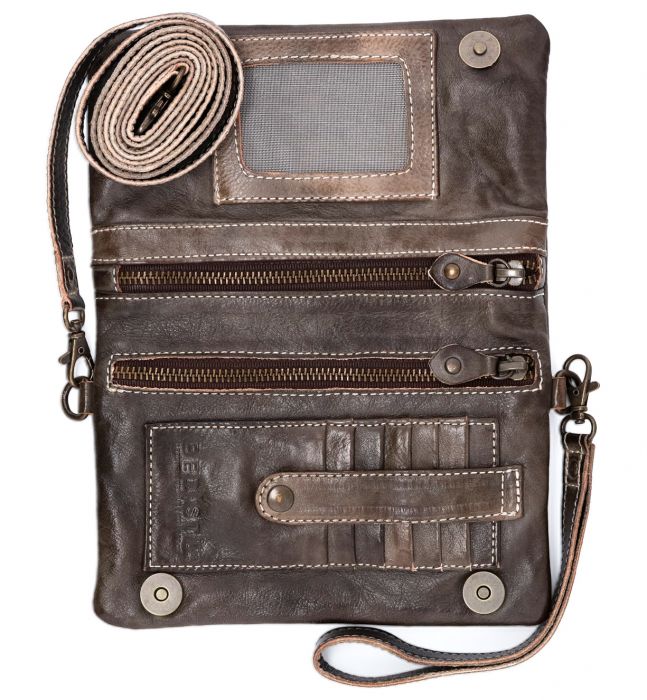 - Inner zipper, leather pulls