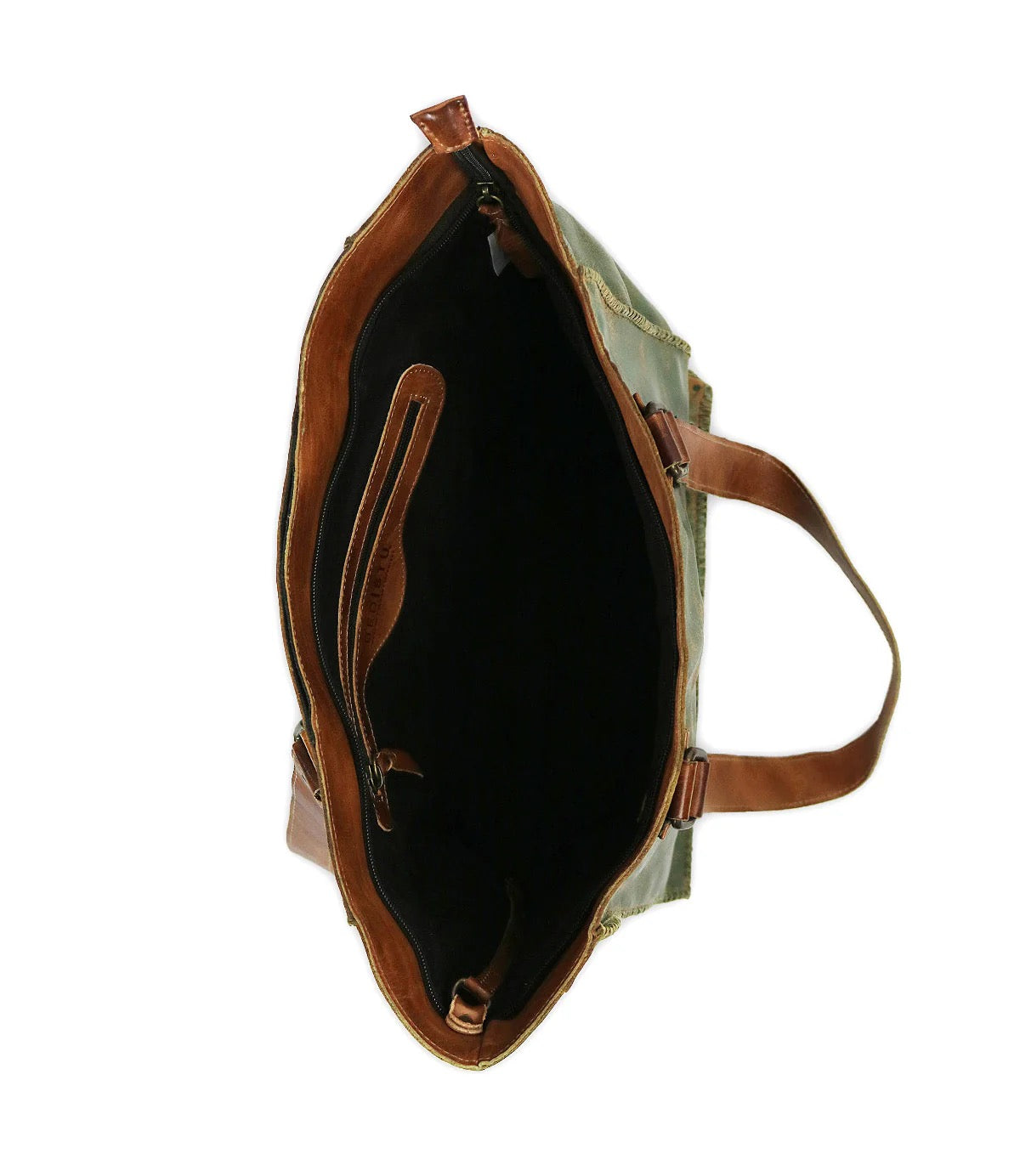 • 1 interior zippered pocket with braided leather pull, 2 slip pockets
