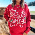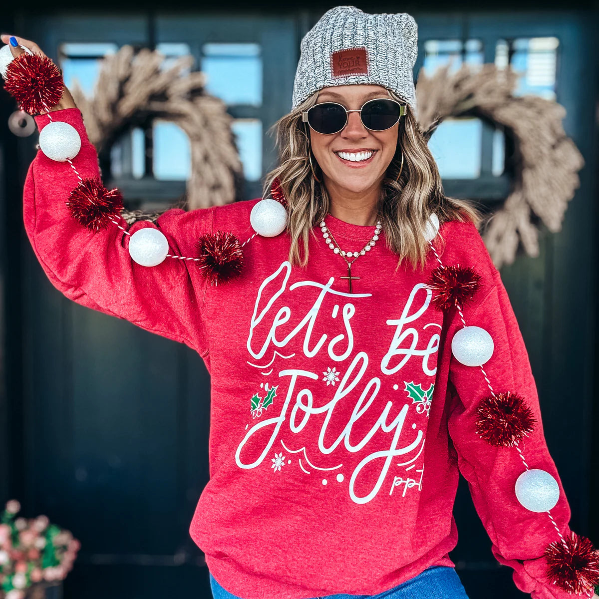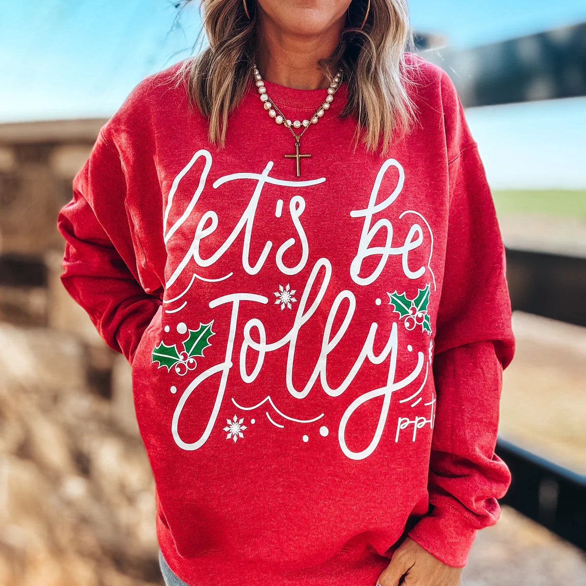 Spread holiday cheer with the Let's Be Jolly Sweatshirt! This cozy red sweatshirt features a festive message perfect for Christmas gatherings or casual winter days. Stay comfy and spirited all season long.