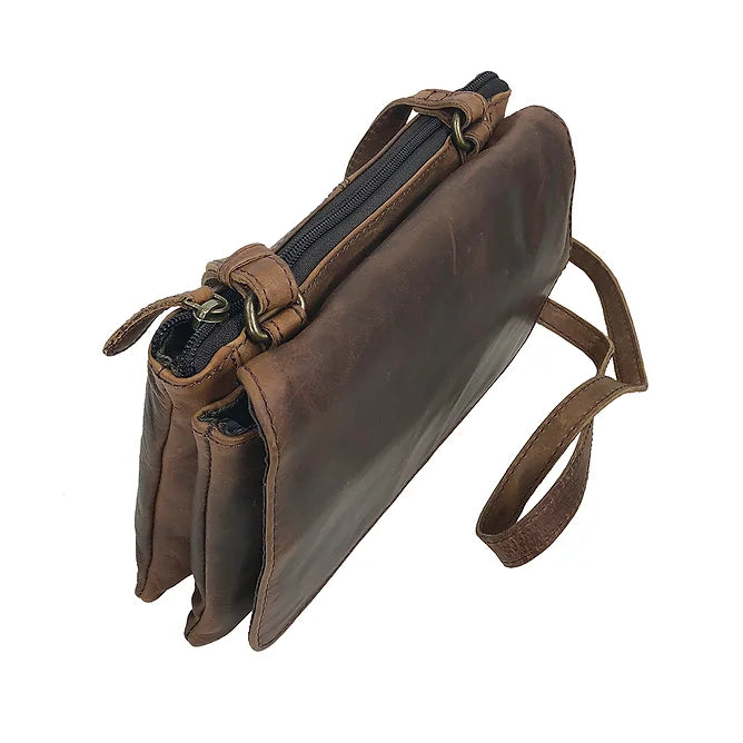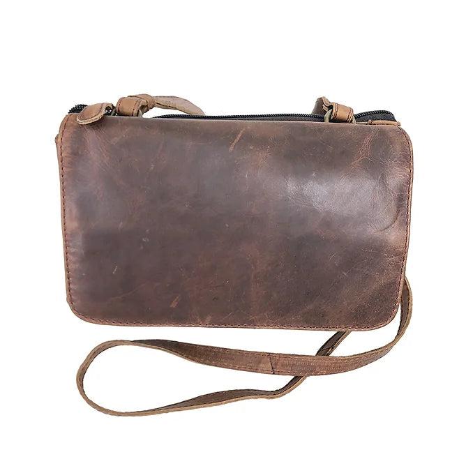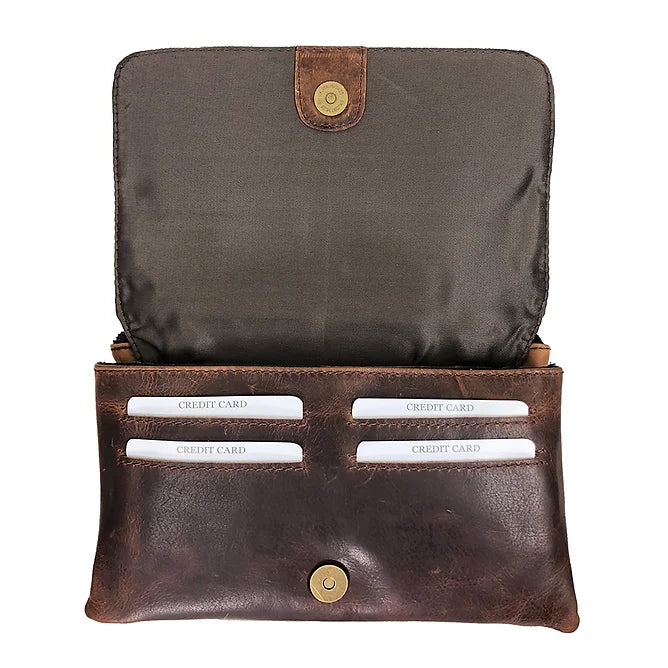 This genuine leather wallet crossbody combines rugged charm with everyday functionality. With a rich distressed finish and timeless design, it features a magnetic flap closure, six card slots, and multiple interior compartments—including a zippered section for coins or valuables.