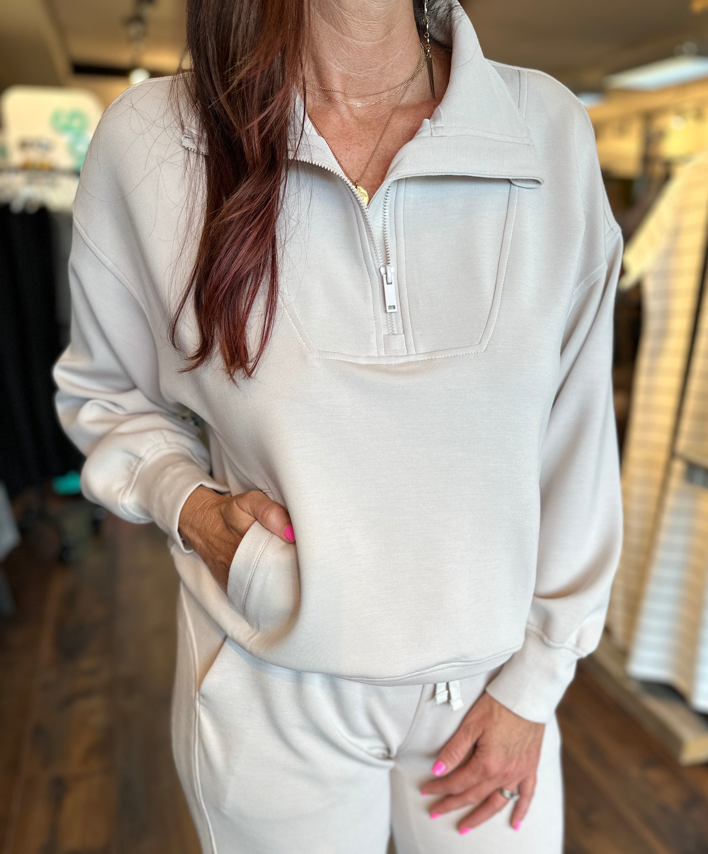 Rambler Collar Zip Pullover - Mocha Cream