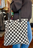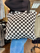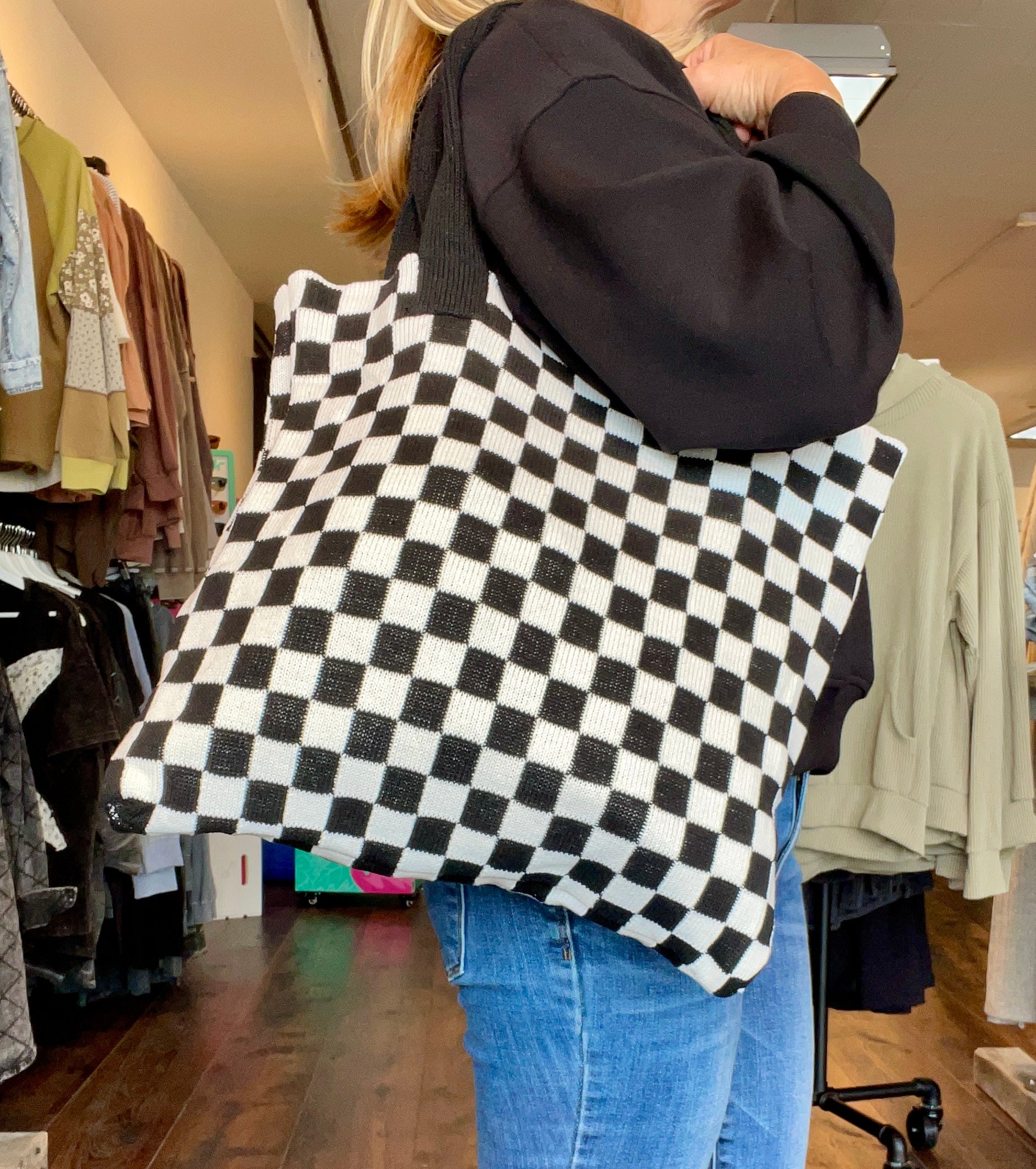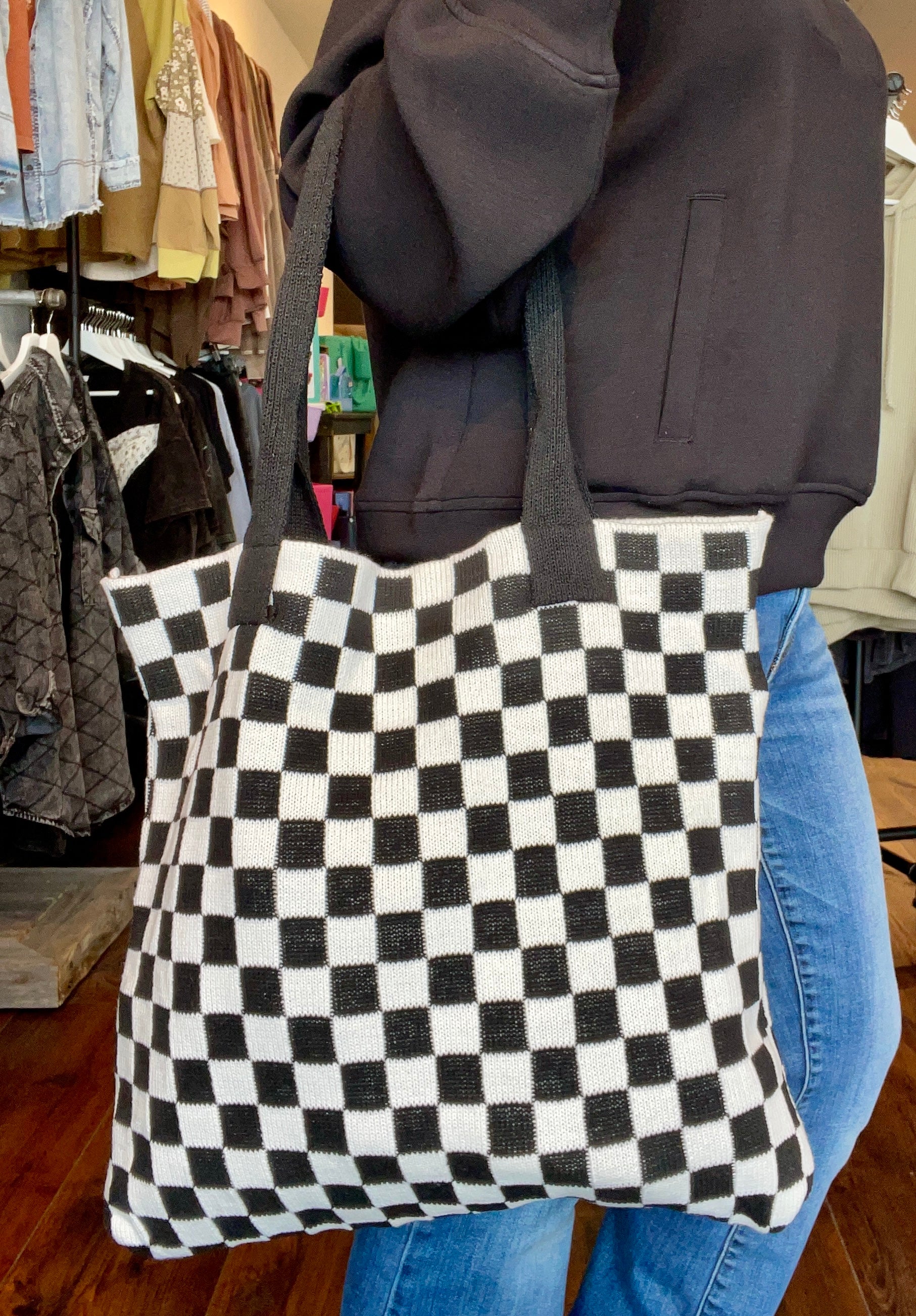 This checkered knit tote is such a fun vibe! It will be perfect with Fall and Christmas colors!