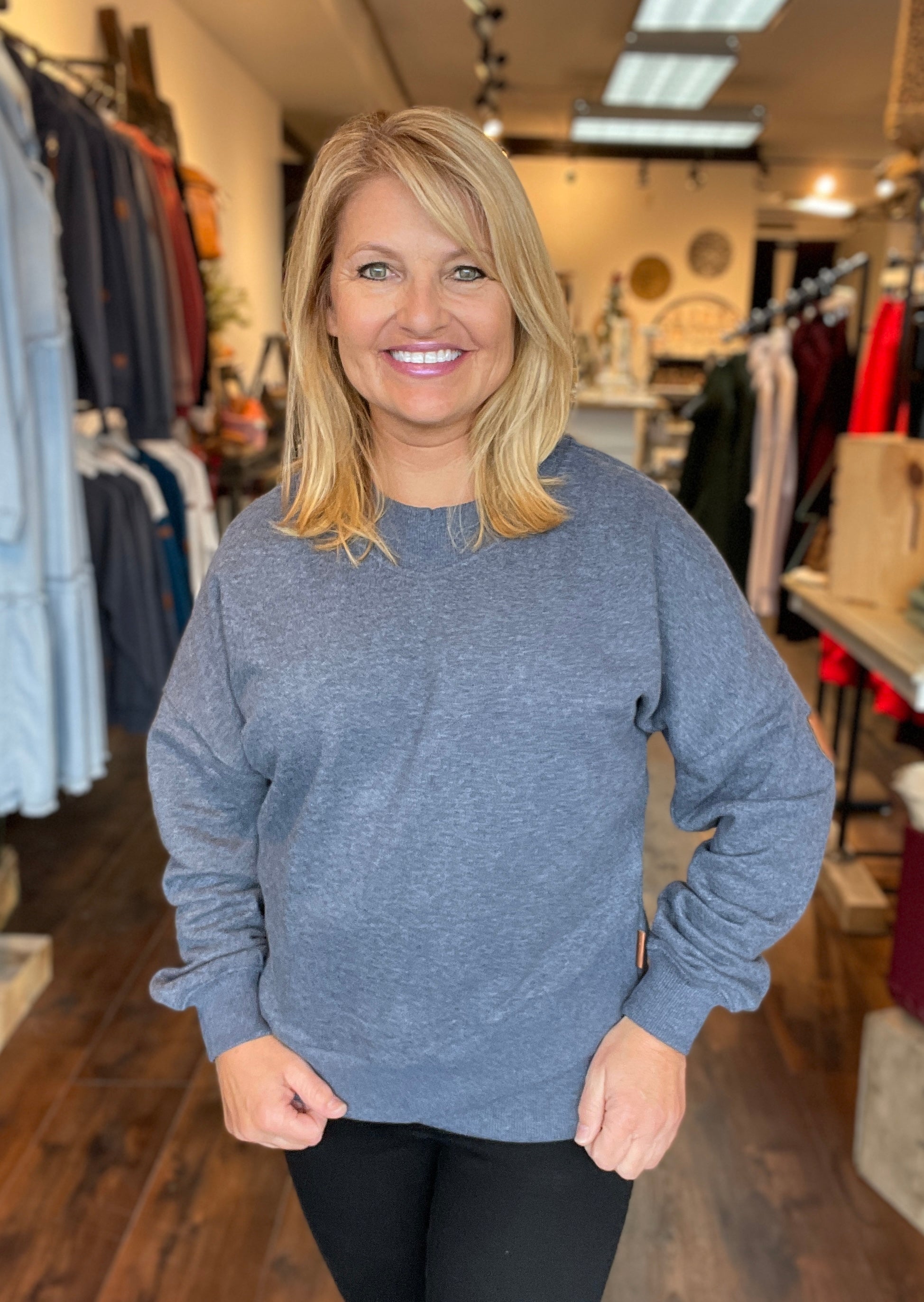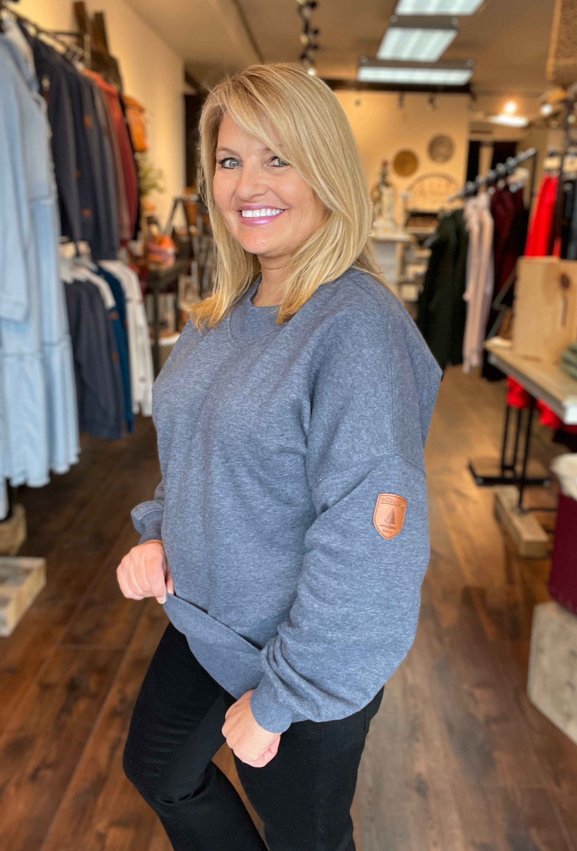 - Model is size Small wearing a Medium.