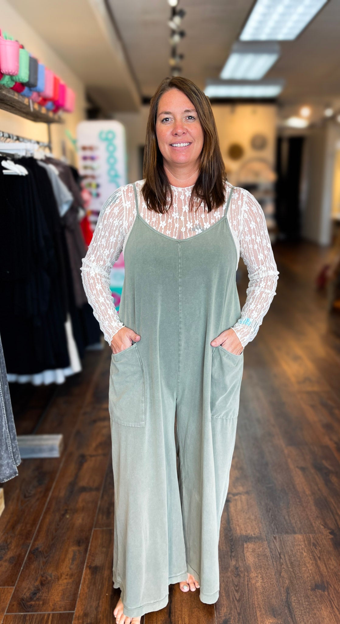 Delicate, dreamy, and a little daring. This all-over sheer lace top features a floral pattern, high neckline, and fitted shape—perfect for layering under overalls, jumpsuits, or your fave strappy dress.