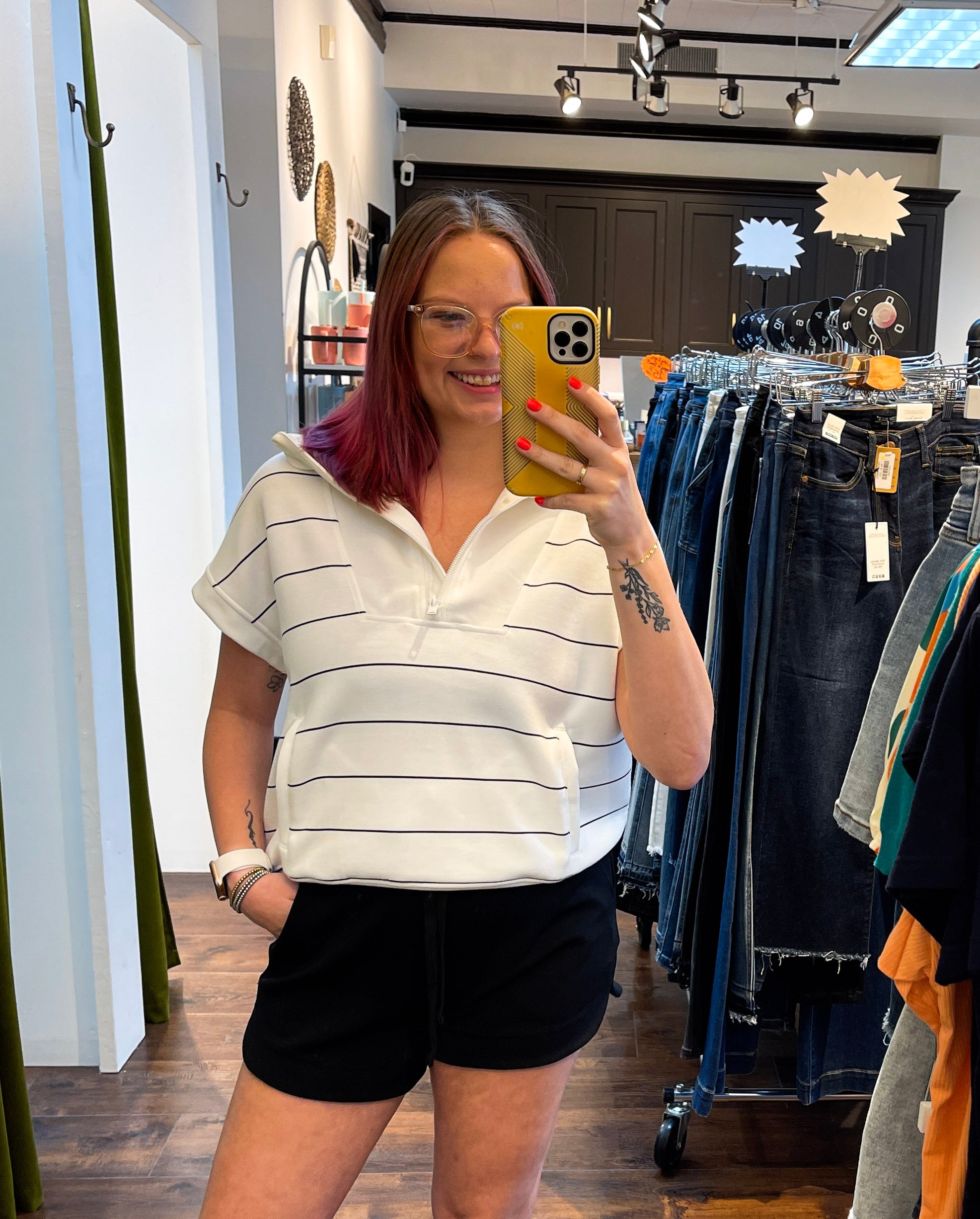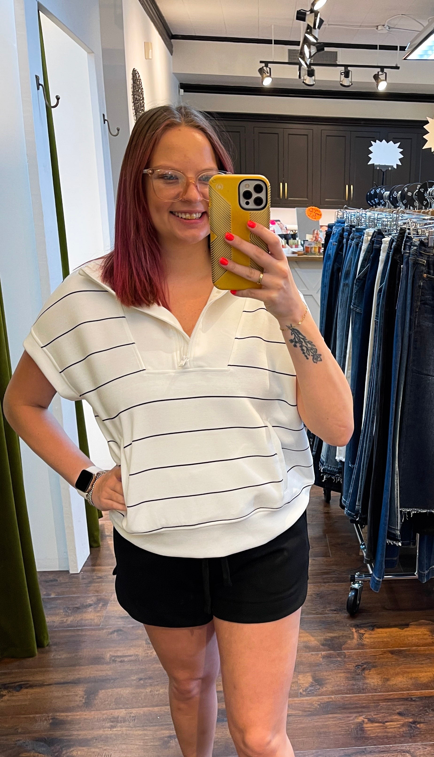 A short sleeve top crafted from luxurious, silky smooth fabric with a mock neck and half zip closure. Effortlessly chic and ultra-soft, it brings comfort to everyday wear.