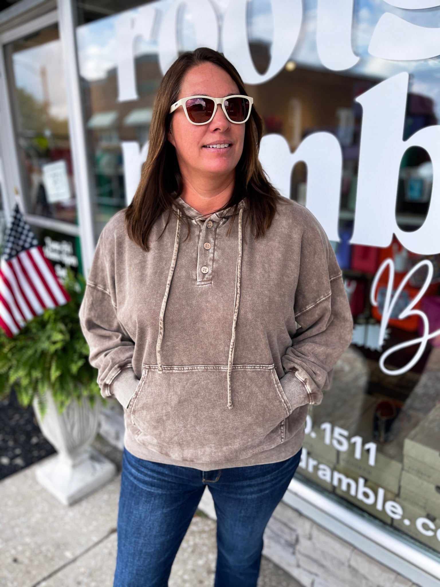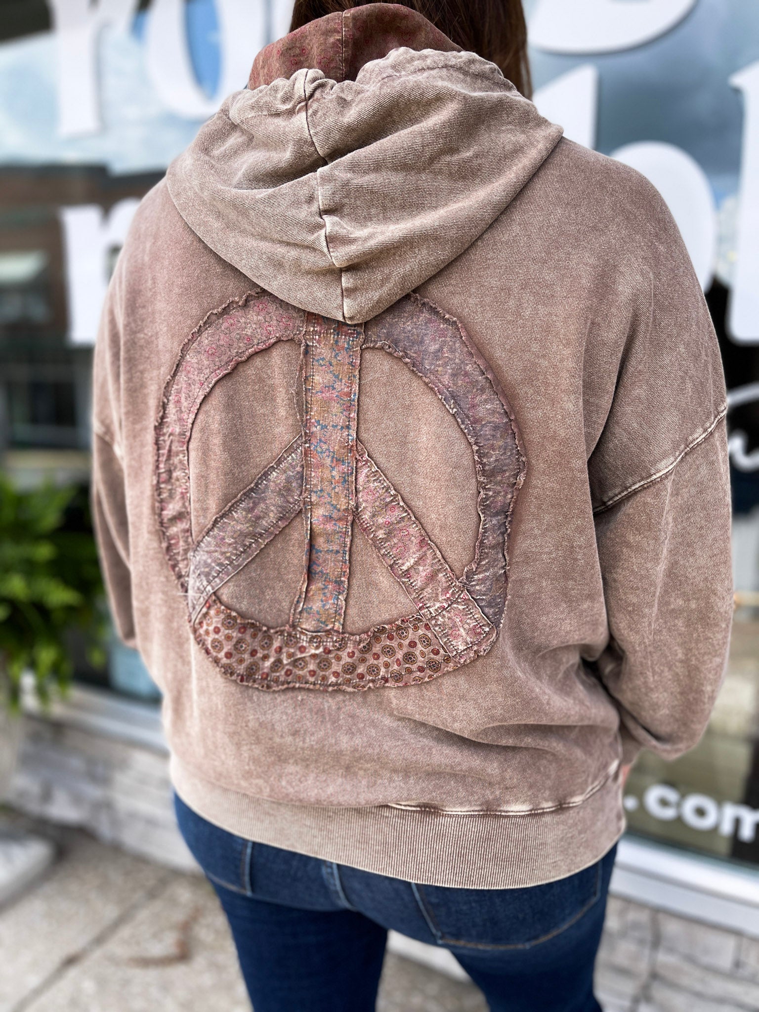 Get ready to spread some peace and love with our We Want Peace Hoodie. This boho-inspired hoodie features a beautiful floral printed hood, a peace patch on the back, a convenient button front, and pockets. With a trendy mineral wash finish, it's perfect for adding some subtle fall vibes to your wardrobe!