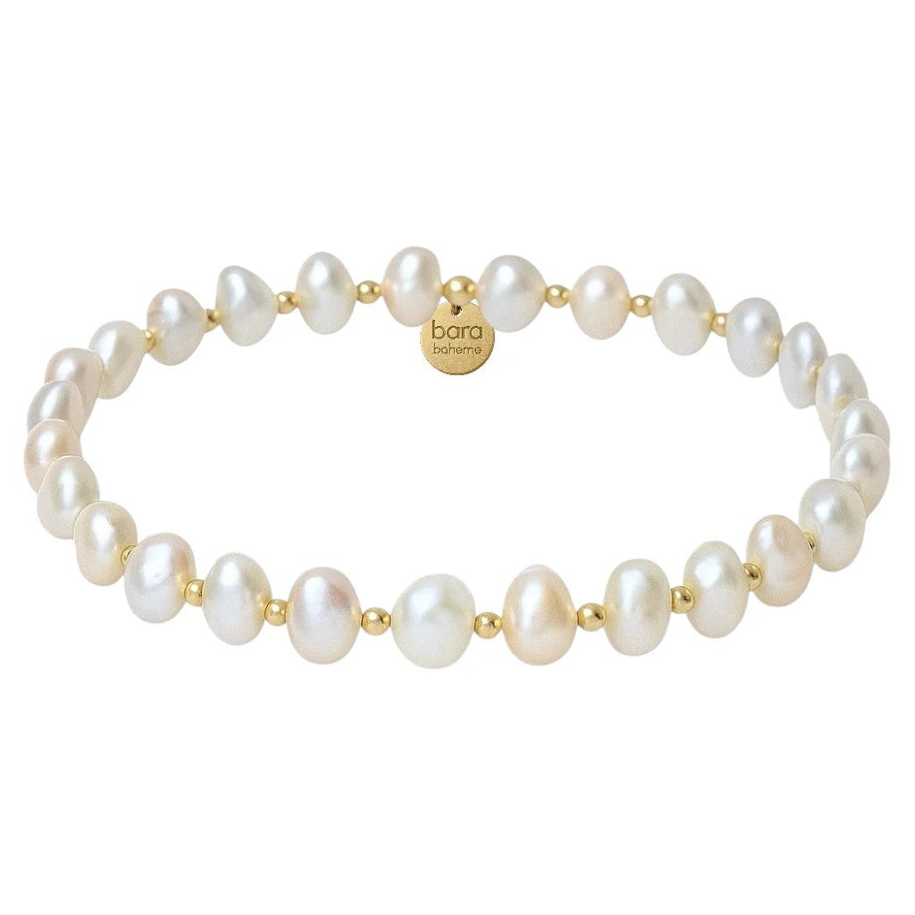 Amelia is simple, timeless, and made to glow with you. Soft freshwater pearls and gold accents come together in this effortlessly elegant stretch bracelet.